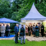 Teilgenommen hatte wieder eine Vielzahl von Verbänden, die mit ihrem sozialen Engagement in Projekten, Vereinen oder Verbänden die Demokratie stärken. Rund 4000 ehrenamtlich Engagierte waren eingeladen, insgesamt besuchten rund 14.000 Menschen das Bürgerfest, das am Samstag – dem zweiten Tag – für alle Interessierten geöffnet wurde. Partner des Gemeinschaftsstandes der AGDW – Die Waldeigentümer waren dieses Mal der Bayerische Waldbesitzerverband und die Forstwirtschaftliche Vereinigung Oberpfalz. „Die ehrenamtlich Engagierten müssen viel stärker in den Vordergrund rücken“, sagte AGDW-Präsident Philipp zu Guttenberg. „Ohne das Ehrenamt würden unsere Strukturen wie ein Kartenhaus zusammenklappen.“Höhepunkt war der Besuch von Bundespräsident Frank-Walter Steinmeier und von seiner Frau Elke Büdenbender am Stand der Waldeigentümer. Zu Guttenberg hatte dem Bundespräsidenten ein Holzkunstwerk, ein fast zwei Meter großes Relief, übergeben, das der spanische Künstler Damián Valles Castro angefertigt hatte.